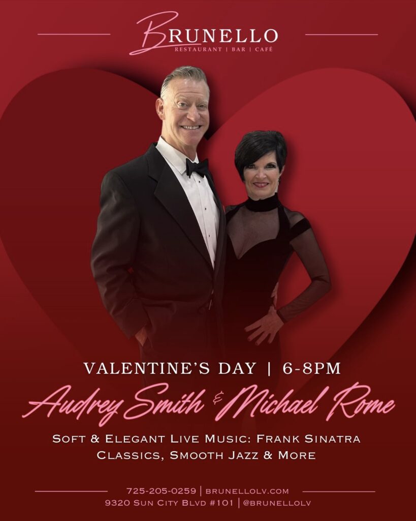 Celebrate the most romantic day of the year with Brunello LV’s Valentine’s Day menu and live music! Savor dishes like Truffle & Caviar Fries, Chilean Sea Bass, Wild Mushroom Ravioli & more while Social Club member Audrey Smith & her partner, Michael Rome, serenade you.