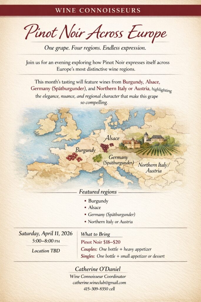 RSVP to Catherine O’Daniel at catherine.wineclub@gmail.com